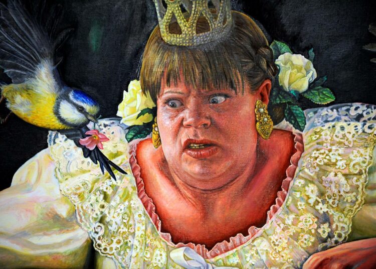 – En päässyt cheerleaderiksi, siksi musta tuli tämmönen, hän vinoilee, kun katsellaan valtavia lyijykynäpiirroksia ja vanhempia värinkylläisiä maalauksia, joissa naiset esitetään yksityiskohtiaan myöten, ihohuokosen tarkkuudella, ei kovin imartelevassa valossa.