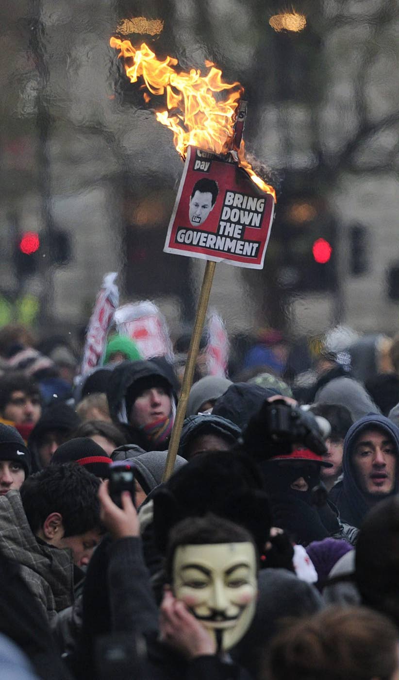 Brittiopiskelijat osoittamassa mieltään Lontoossa lukukausimaksujen kolminkertaistamista vastaan.