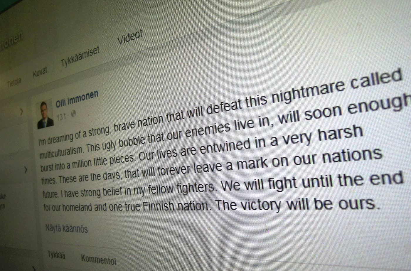 – Samaten on kohun keskellä tärkeää muistaa, että kyse ei ole yksittäistapauksesta tai vain Olli Immosesta. Kyse on poliittisesta linjasta, jota yksi siipi perussuomalaisissa on johdonmukaisesti edistänyt jo vuosien ajan, Timo Soinin hiljaisella hyväksynnällä.