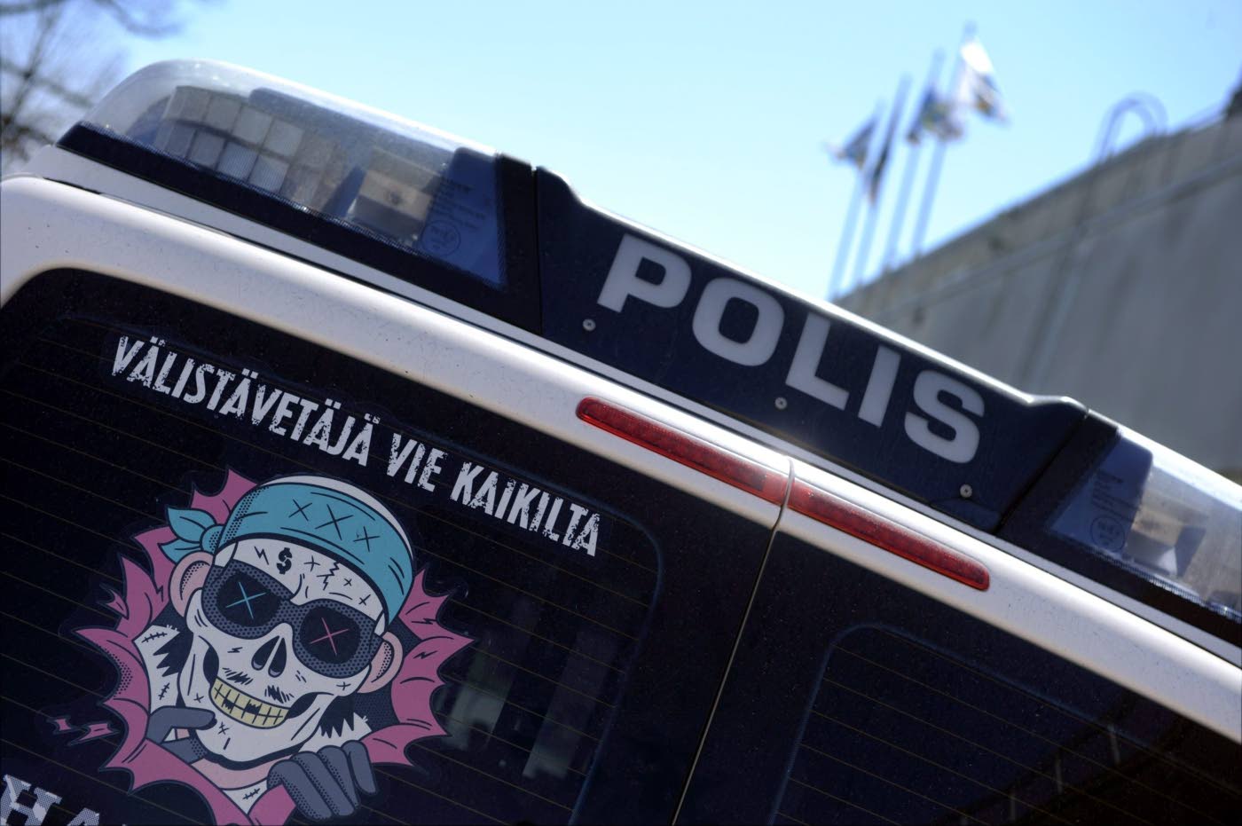 Vuonna 2013 harmaan talouden torjuntakampanja "välistävetäjä vie kaikilta" näkyi muun muassa poliisiautoissa. Kuva: Lehtikuva/Trond H. Trosdahl
