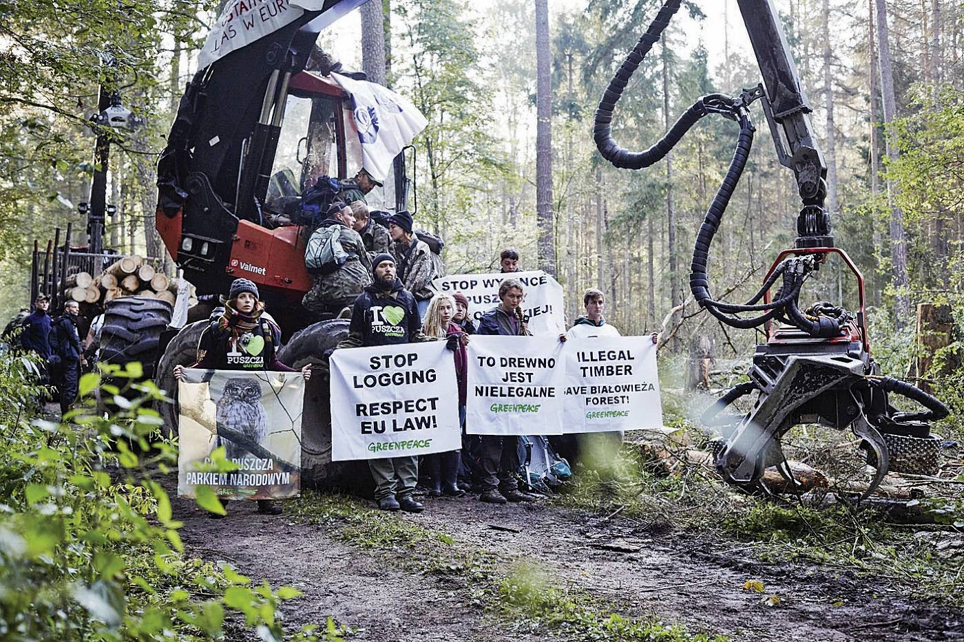 Greenpeacen aktivistit yrittivät 29. elokuuta estää hakkuut Bialowiezassa.