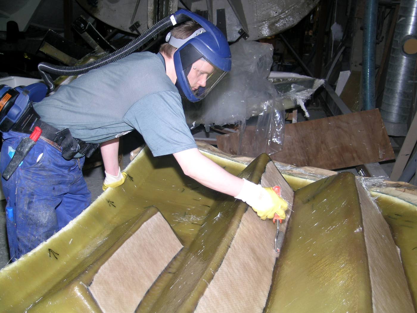 Työturvallisuuskeskus kannustaa Tapaturmapäivän kampanjasivuilla hyödyntämään työpaikoilta tuttua turvallisuusasennetta myös vapaa-ajalla. Arkistokuvassa moottoriveneen rakentamista. Kuva: Pekka Helminen
