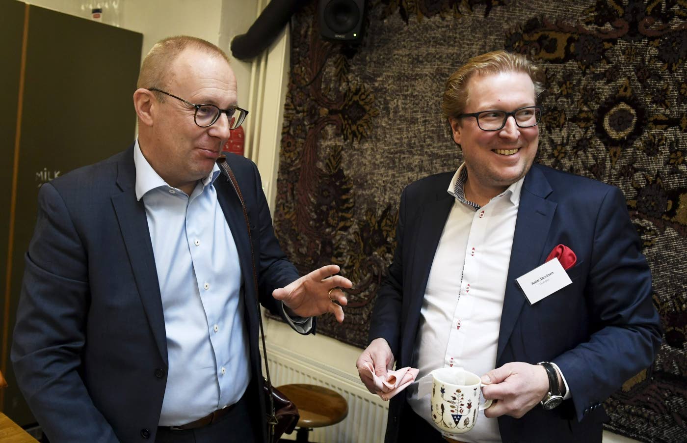 SAK:n puheenjohtaja Jarkko Eloranta (vas) ja Googlen maajohtaja Antti Järvinen julkistivat Jatkuvasta oppimisesta totta -keskustelupaperin. Kuva: Lehtikuva/Vesa Moilanen