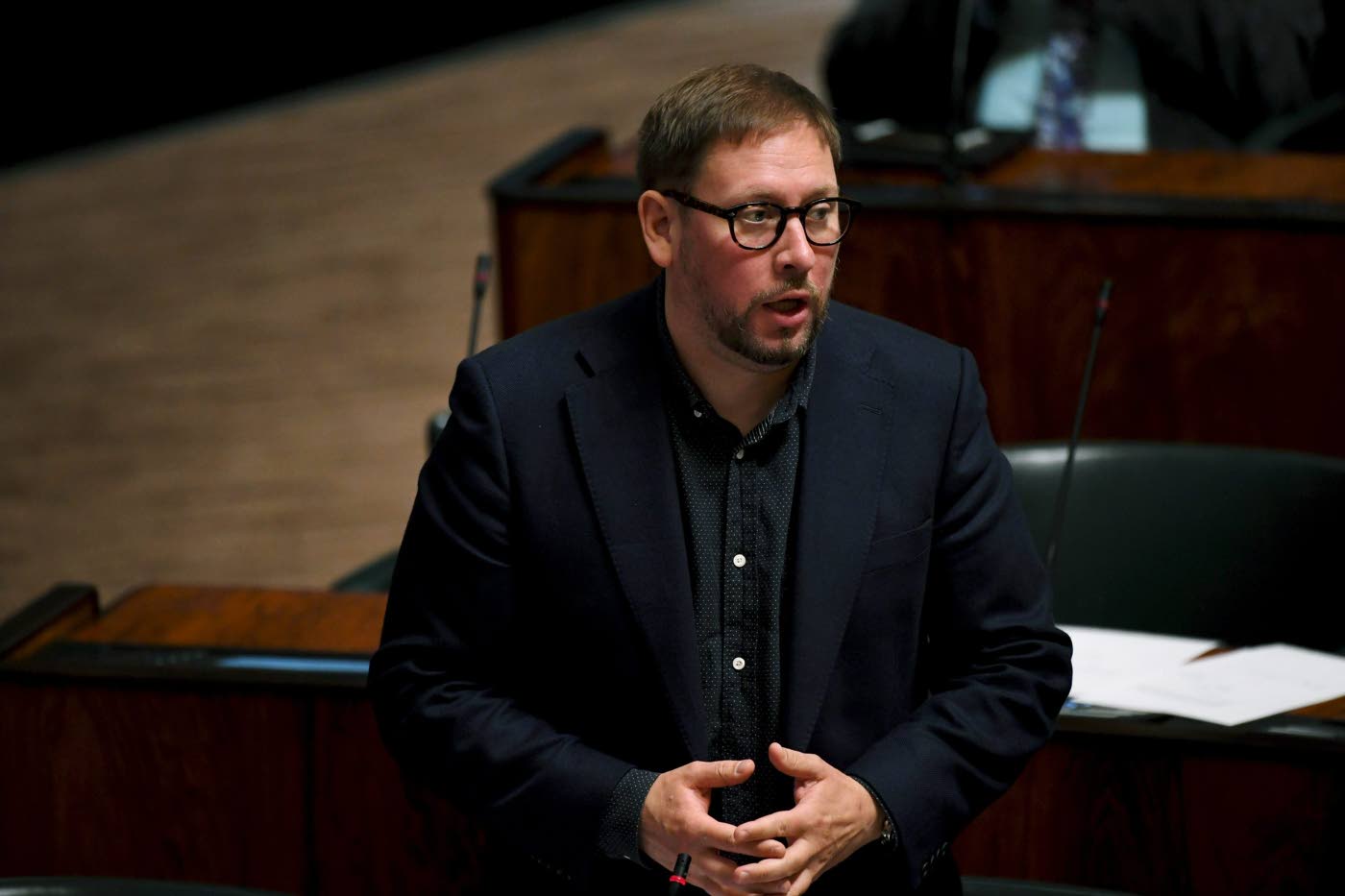 Edellisen kerran, kun työväenpuolueet olivat hallituksessa, isien osuutta lisättiin. Nyt tämä hallitus on lisäämässä sitä, Paavo Arhinmäki sanoi perhevapaauudistuksesta. Kuva: Lehtikuva/Antti Aimo-Koivisto