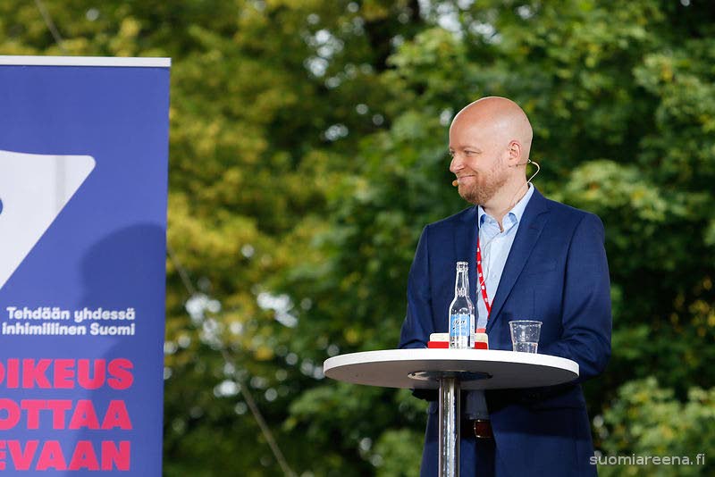 Kansanedustaja Jussi Saramo osallistui tänään vasemmistoliiton puoluepäivän tapahtumiin Porin SuomiAreenassa. Kuva: Taija Turkia/SuomiAreena