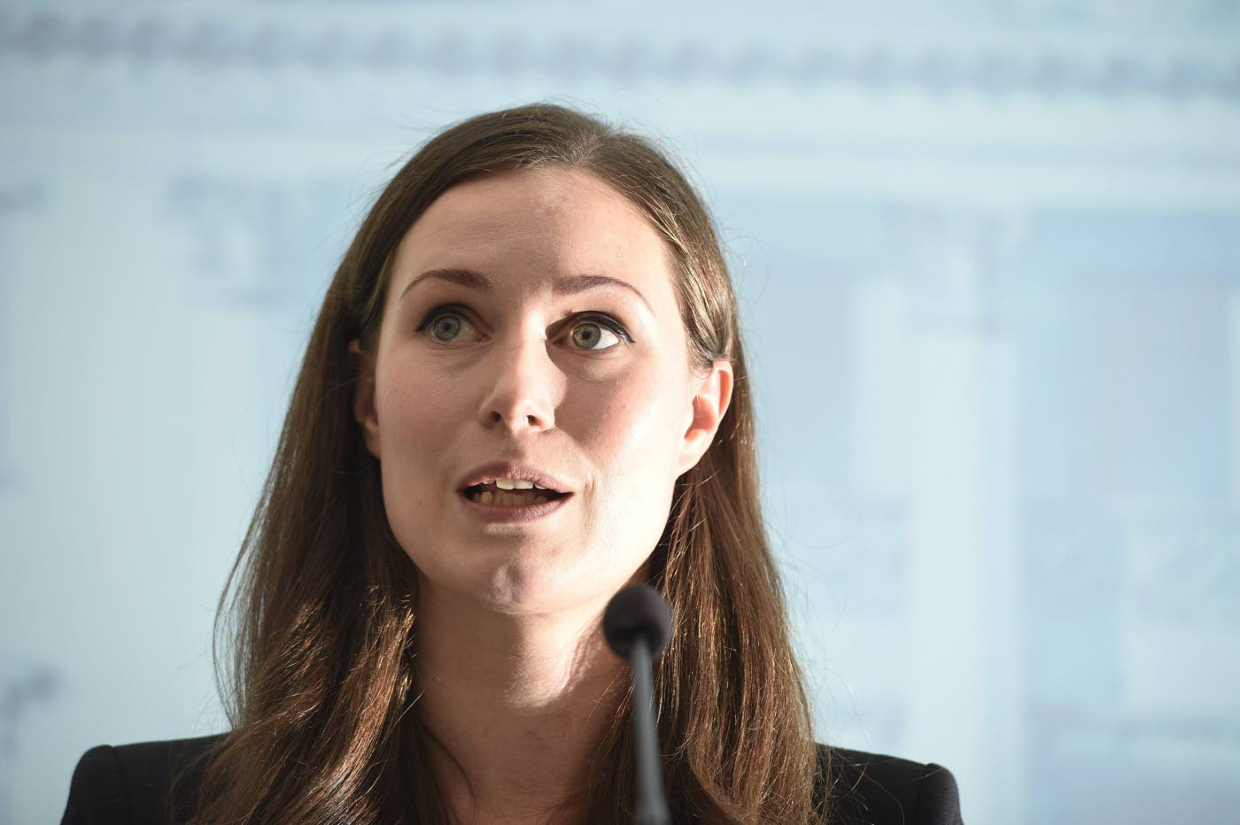Liikenne- ja viestintäministeri Sanna Marin kertoi raideliikennehankkeiden edistämissuunnitelmista tiistaina. Kuva: Lehtikuva/Martti Kainulainen