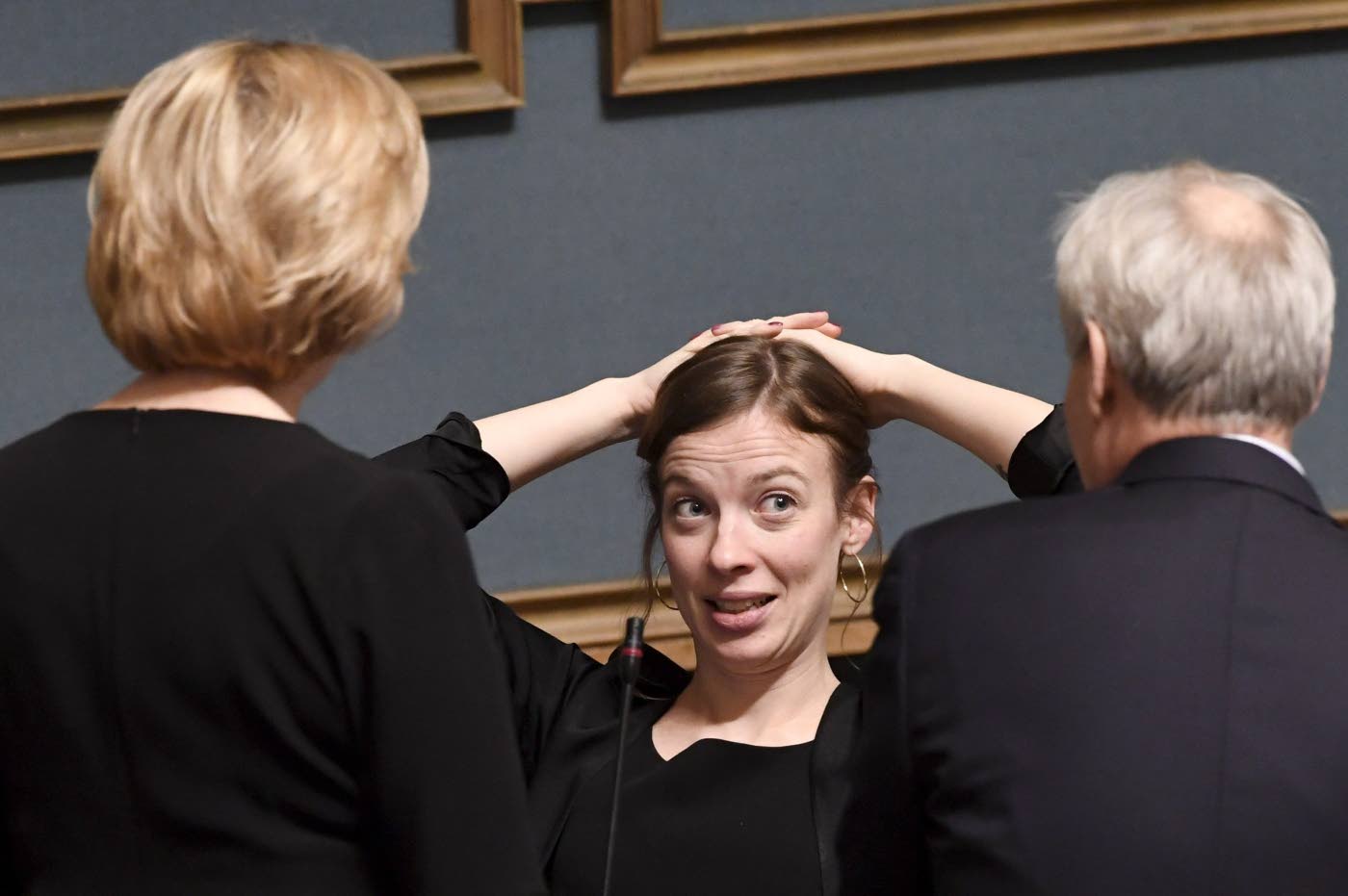 Li Andersson iltapäivällä eduskunnassa. Kuva: Lehtikuva/Heikki Saukkomaa