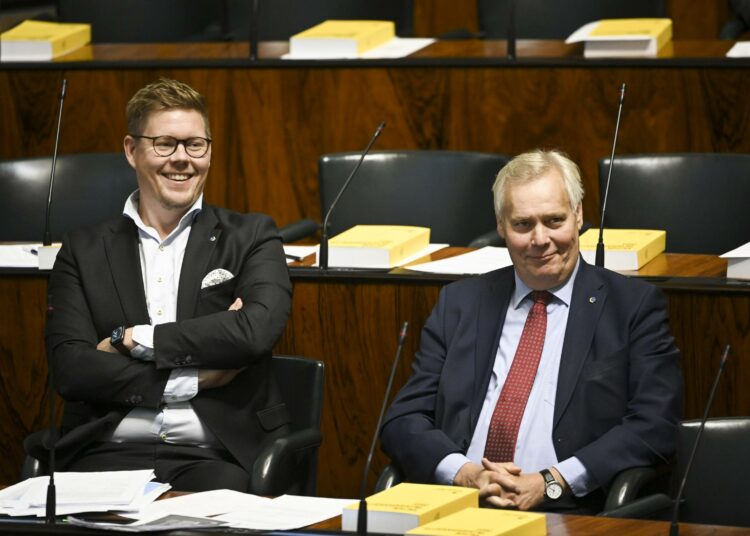 – Verotulot kasvavat rajusti ja sosiaalimenot pienenevät, ja sen takia myös velka-aste laski ennen sotaa. Tietysti lasku alenee nyt, kun käytämme miljardeja puolustukseen, mutta siitäkin olemme olleet samaa mieltä tässä salissa. Silti veroastekin on laskussa. Veroaste on ensi vuonna kymmenen prosenttia pienempi kuin vuosituhannen alussa.