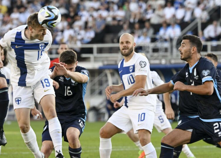 Heti perään Teemu Pukki viimeisteli Suomen kuudennen osuman oikean laitapakin Nikolai Alhon syötöstä.
