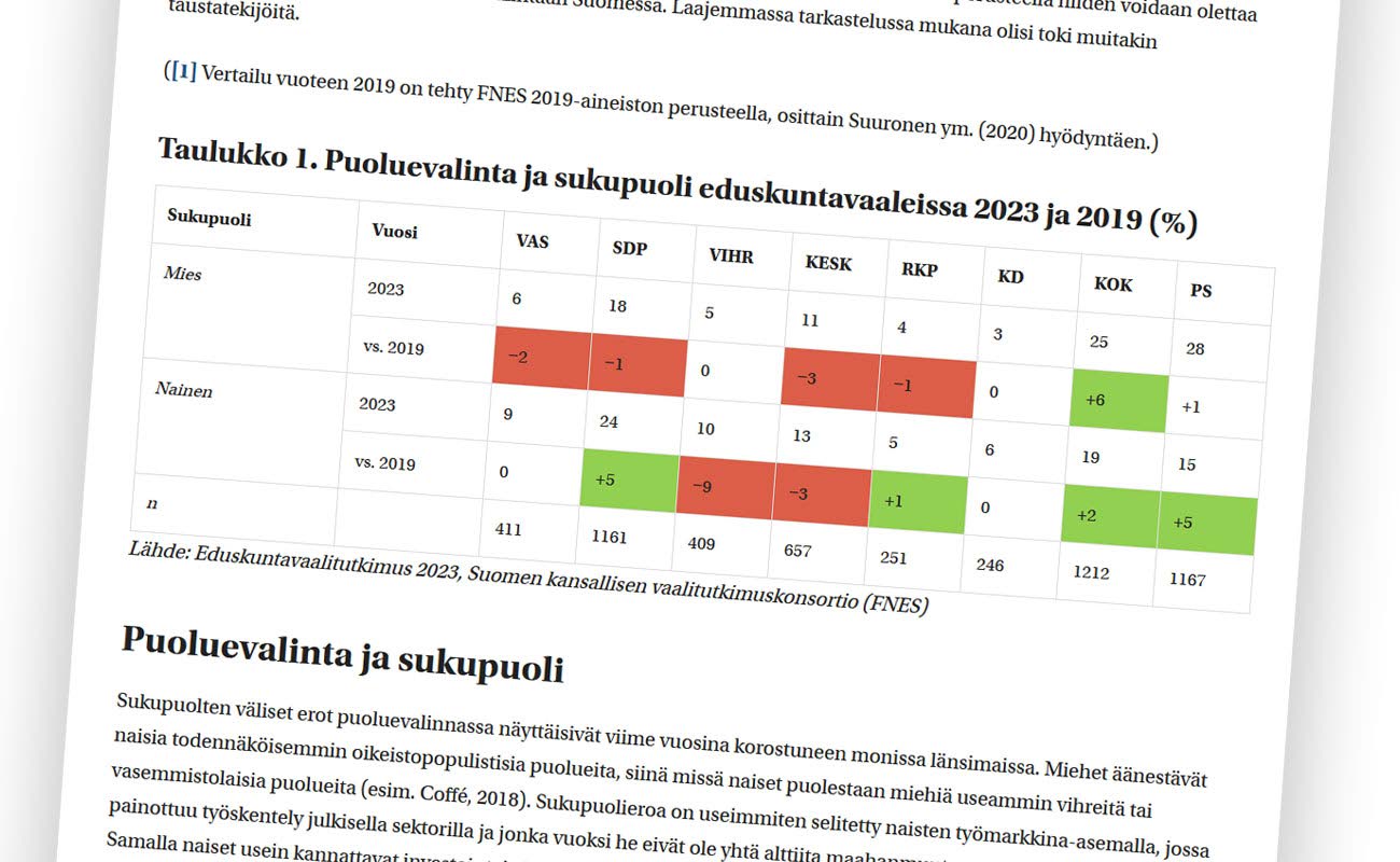 Vasemmistoliiton kevään vaalitappio selittyy miesäänestäjien menetyksellä. Keskiviikkona julkaistun eduskuntavaaleja läpikäyneen vaalitutkimuskonsortion aineistosta selviää, että vasemmistoliitto menetti kaksi prosenttiyksikköä miesäänestäjistään vuoden 2019 vaaleista.