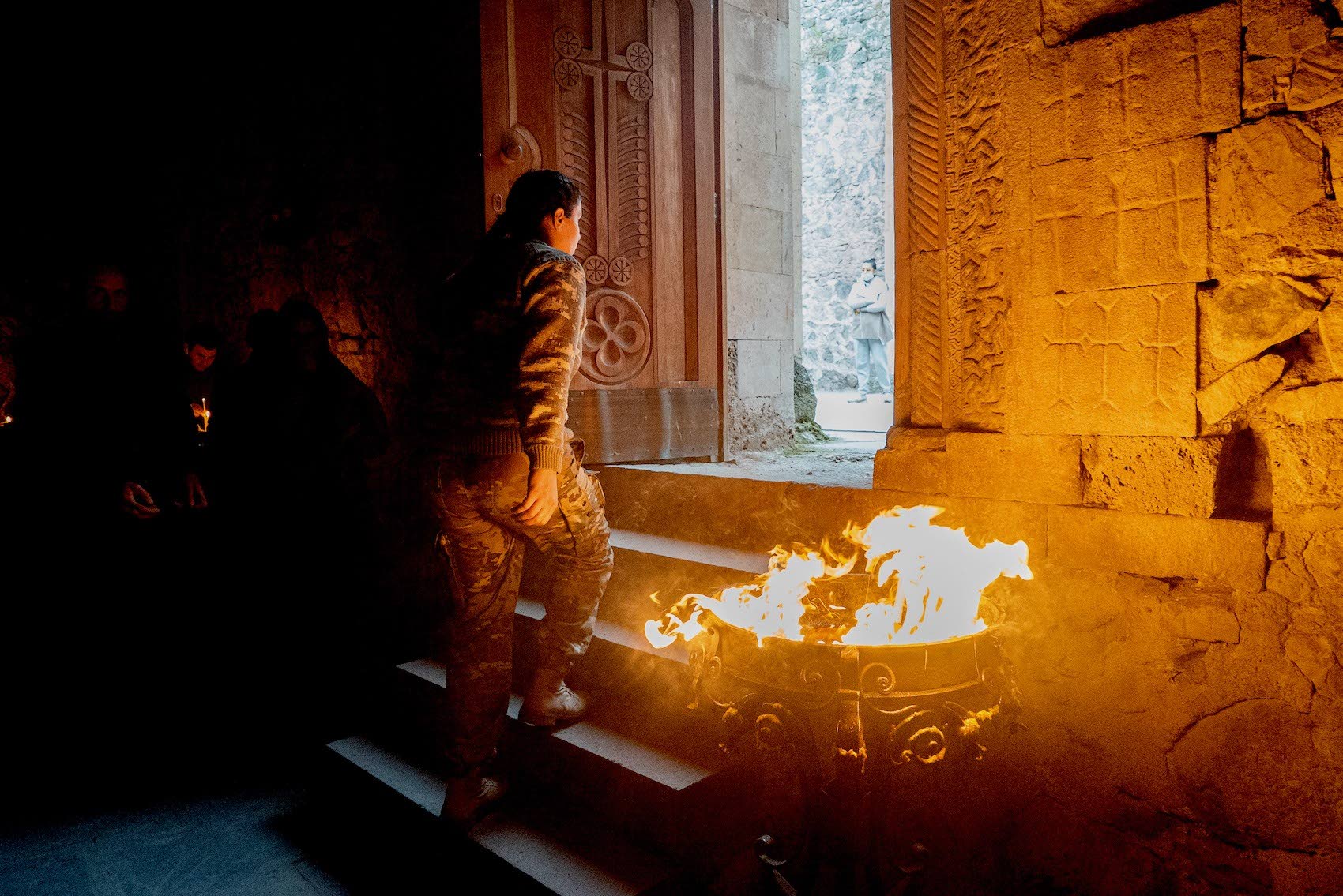 Viimeisiä hetkiä Vuoristo-Karabahissa sijaitsevassa Dadivankin luostarissa vuoden 2020 sodan jälkeen. Tämäkin arkeologinen aarre on armenialaisten ja azerien välisen sodan uhreja.