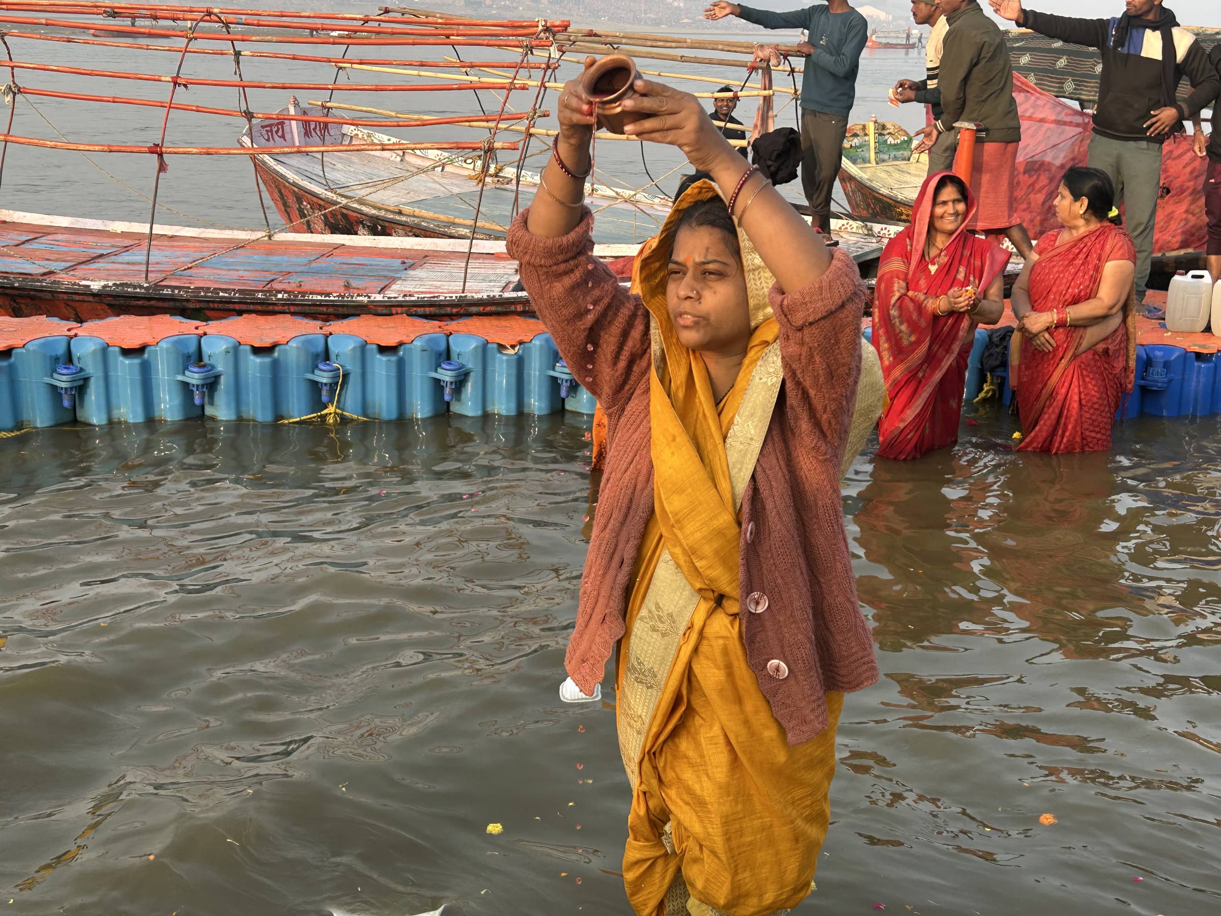 Kastautuminen kolmen pyhän joen, Gangesin, Jamunan ja myyttisen Saraswatin yhtymäkohdassa on yksi hindujen elämän pyhimpiä tekoja, ja osa joka kahdestoista vuosi järjestettävää Maha Kumbh -hindujuhlaa. Seremoniallista kylpemistä johtavat pyhät miehet, joilla on tuhkan peittämät vartalot, mattapintaiset hiukset ja minimalistiset vaatteet.