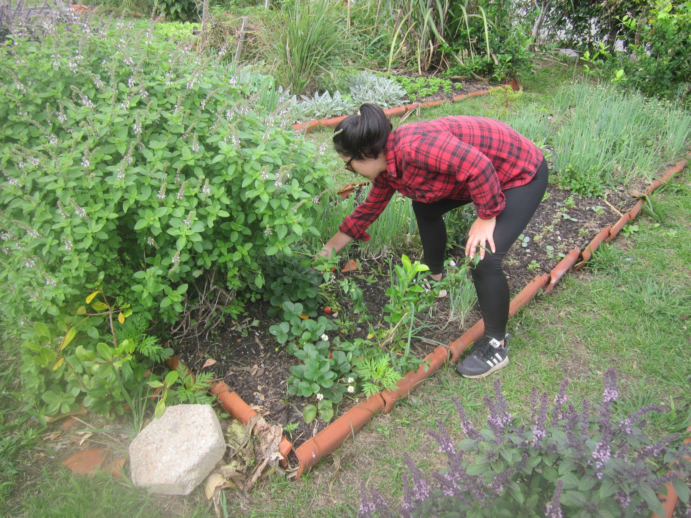 Biologi Koti on puutarhaa huoltavia vapaaehtoisia, kuten hänen kanssaan ahertava yrittäjä Lucila Neveskin. Biohajoavia pakkauksia myyvä Neves arvostaa puutarhassa eniten sen suomaa mahdollisuutta tutustua naapuruston muihin asukkaisiin.