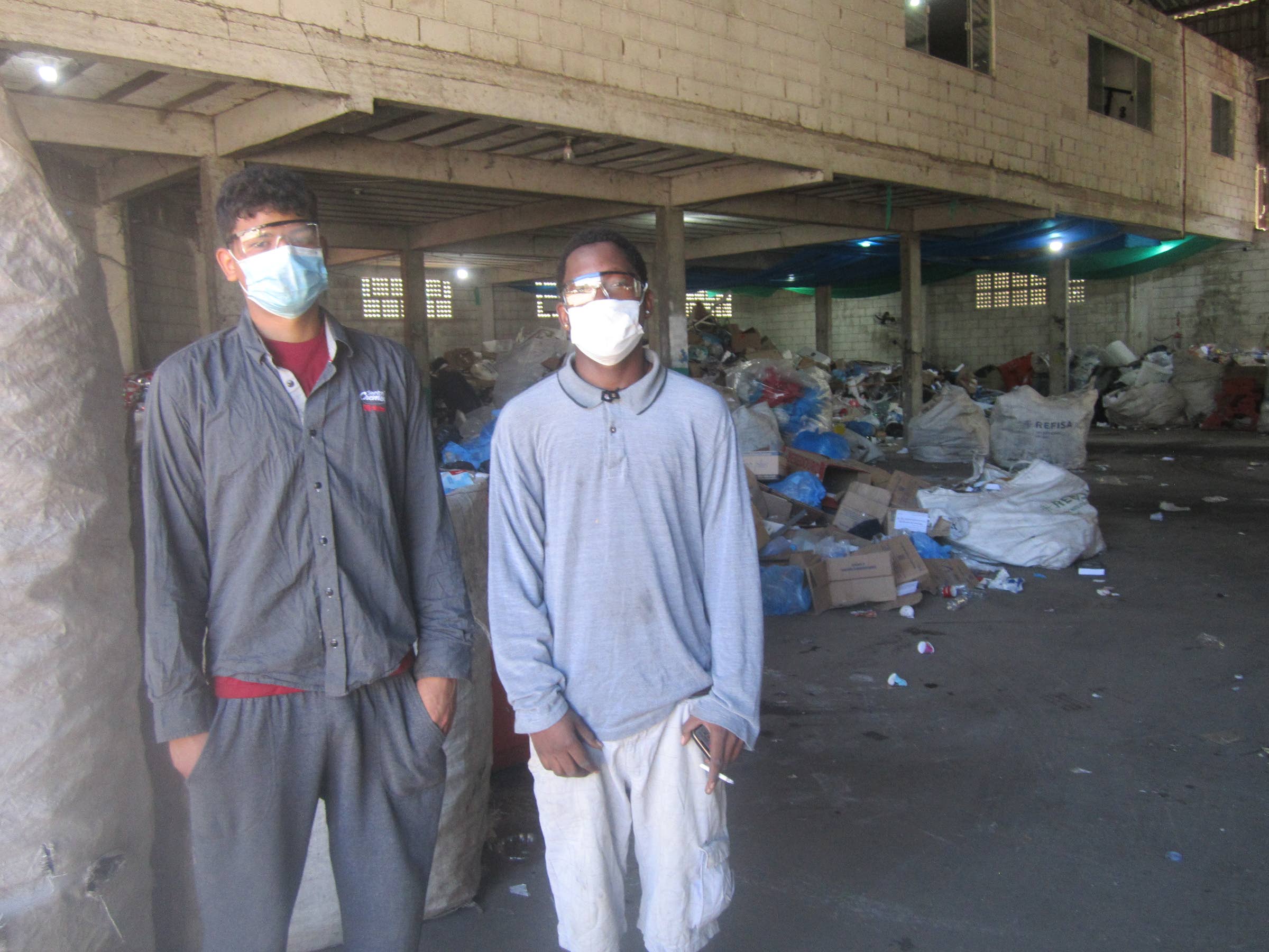 Kaksi nuorta venezuelalaista, jotka ovat löytäneet töitä kierrätyskeskuksesta. Monet keskuksen työntekijöistä ovat maahanmuuttajia, Venezuelan lisäksi Haitilta ja Perusta.
