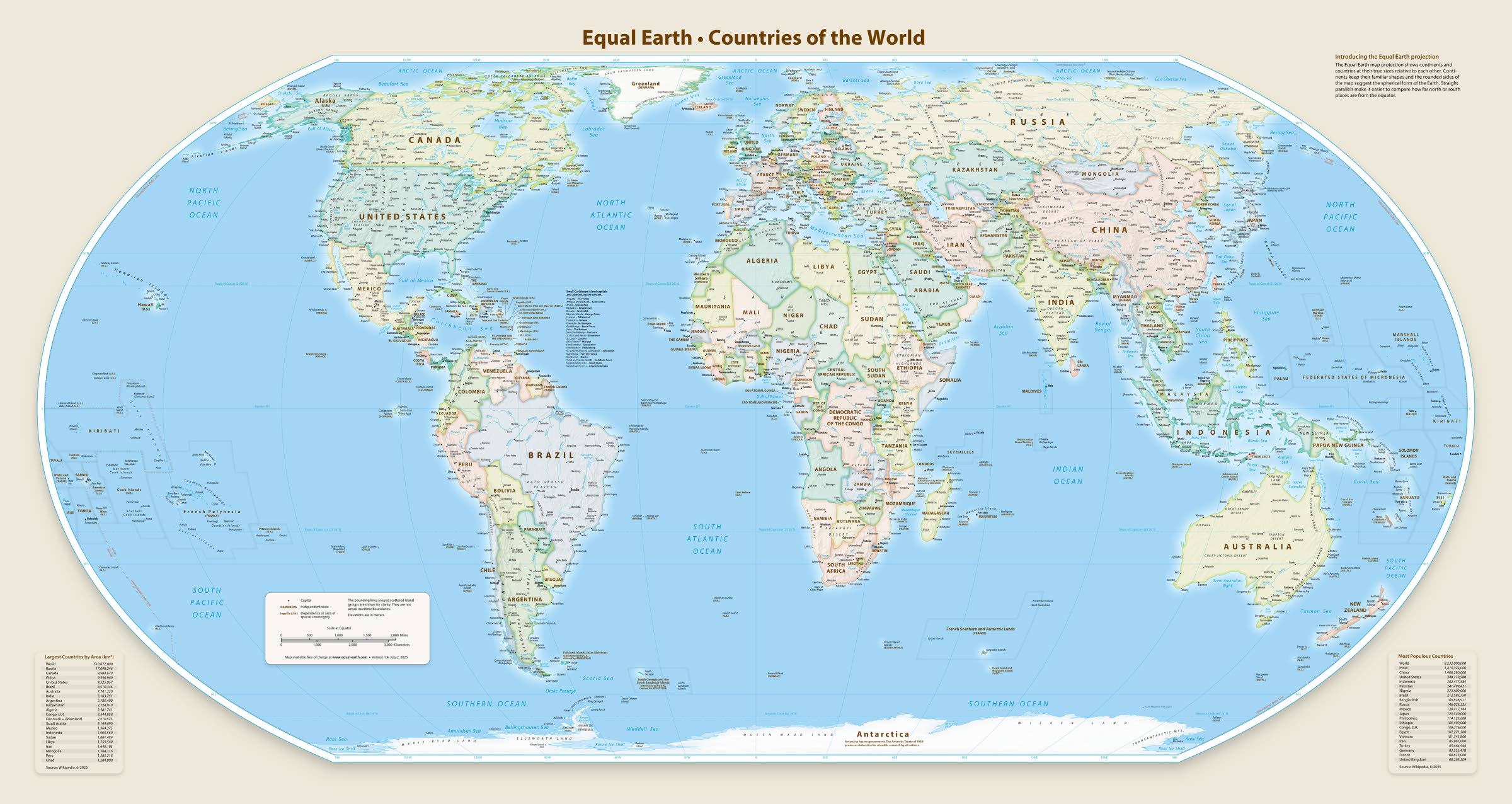 Tässä ”tasavertaisessa maailmankartassa” kaikki maailman maat ja maanosat ovat oikeassa suhteellisessa koossaan ja pitkälti oikeissa ja tutuissa muodoissaan.
