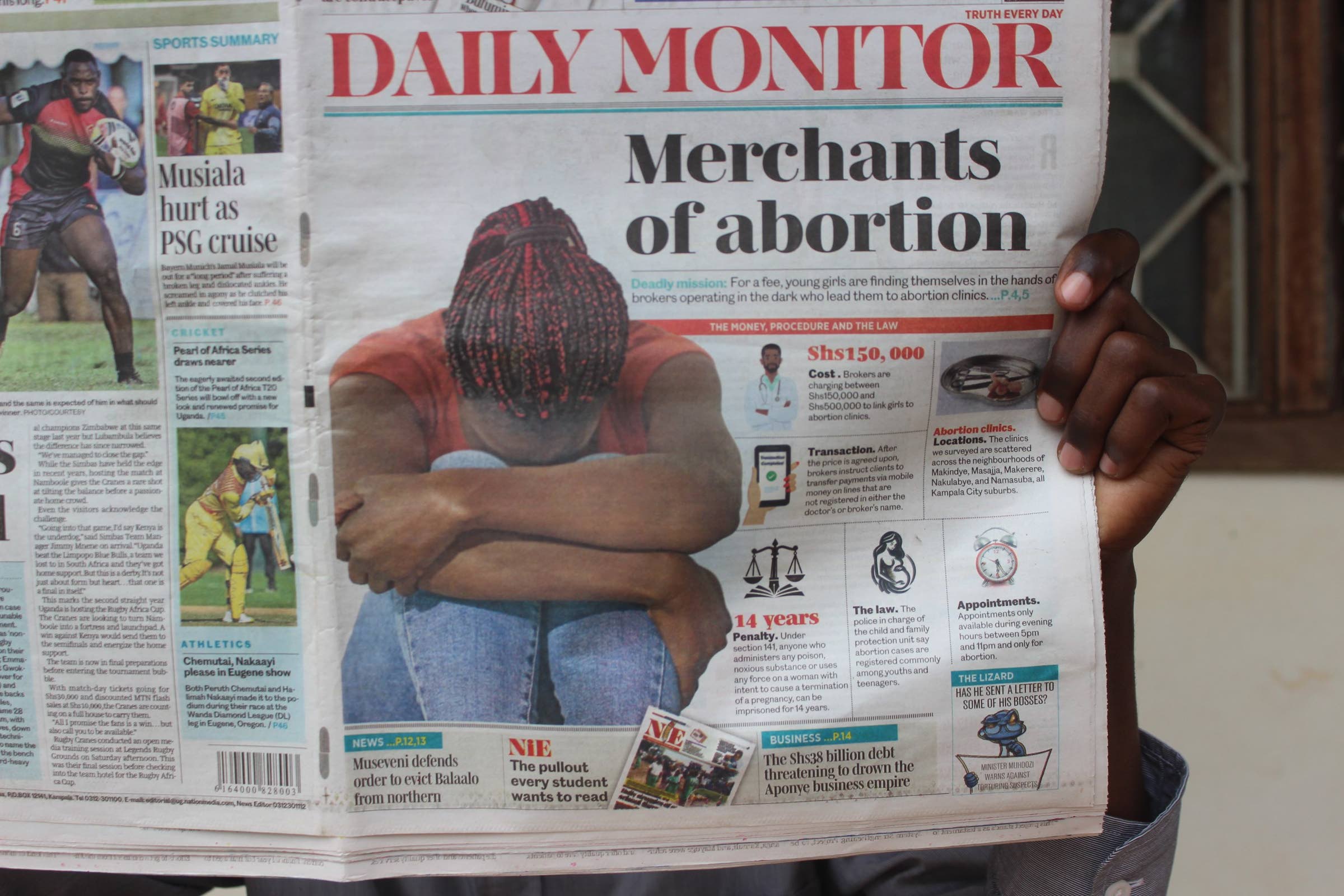 Abortti on laiton Ugandassa, siksi raskaudenkeskeytystä tarvitsevat naiset joutuvat turvautumaan syrjäkujien epämääräisiin abortintekijöihin. Turvallisen abortin tarjoaminen on rikos.