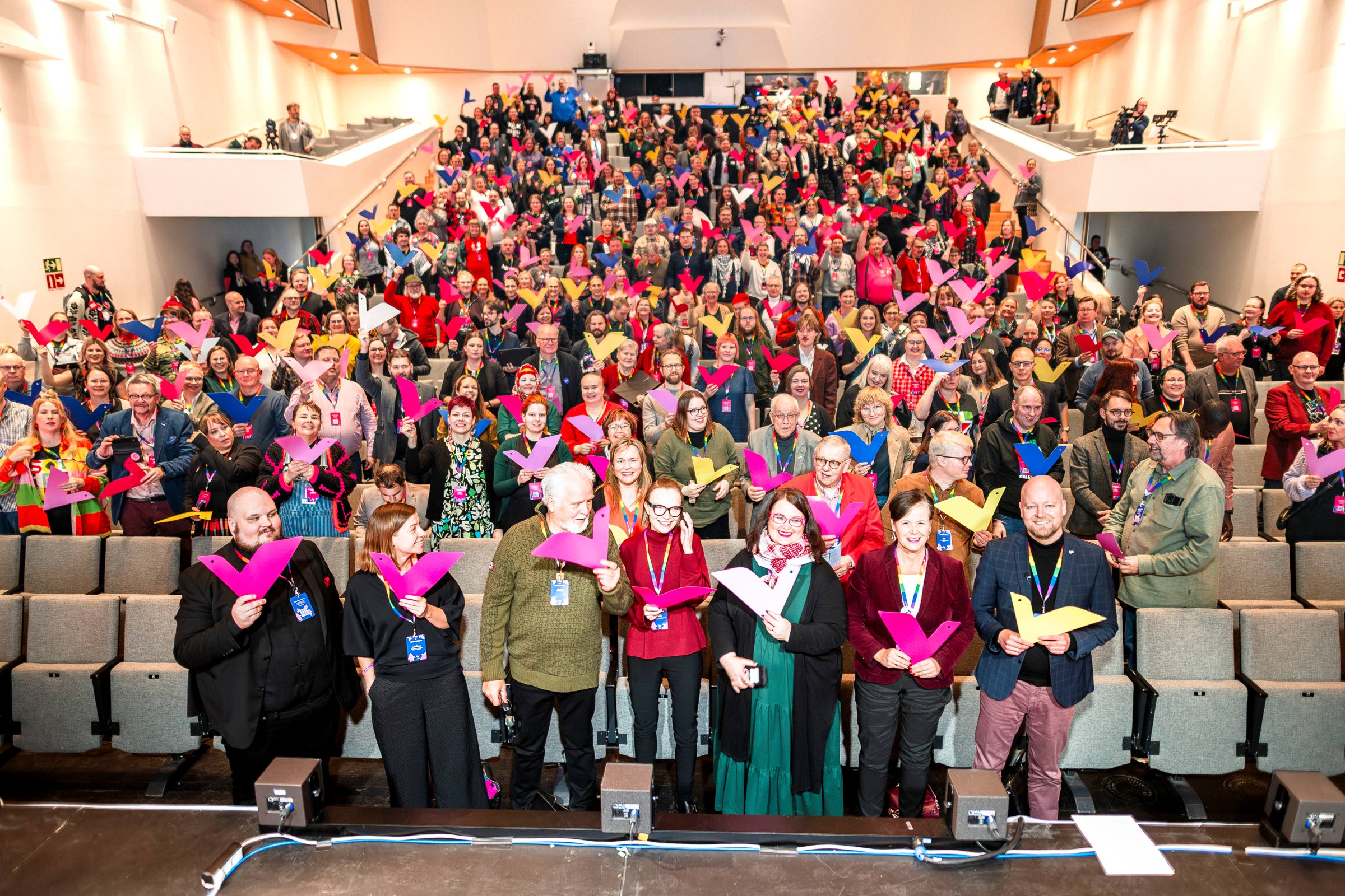 Vasemmistoliiton Vantaan puoluekokouksen lauantai alkoi Li Anderssonin puheella. Kuva: Antti Yrjönen