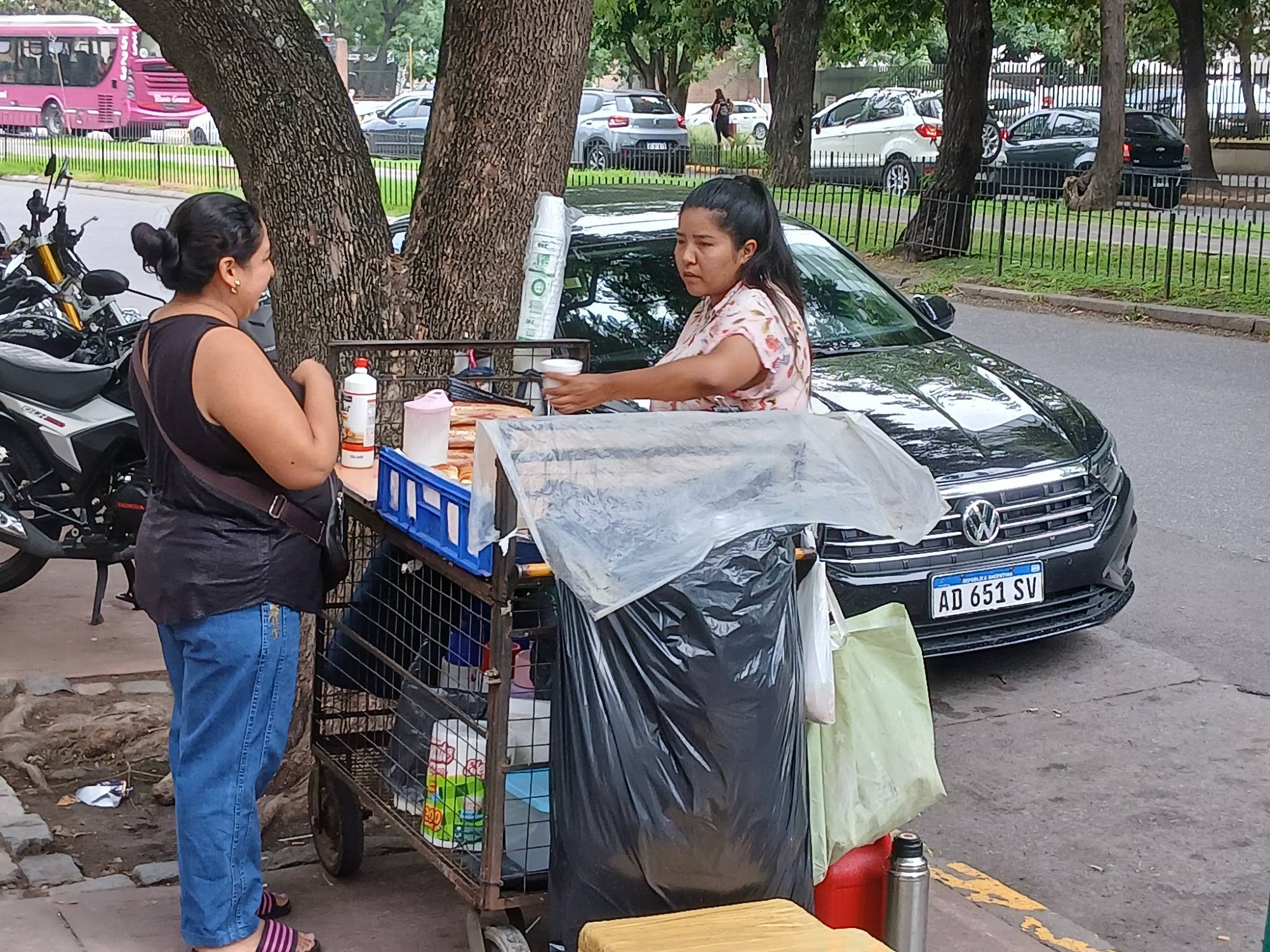 Nainen myy kahvia, keksejä ja makeisia epävirallisessa kojussa julkisen Marie Curie -sairaalan edessä Buenos Airesin Caballiton kaupunginosassa. Kyseessä on yksi lukuisista itse luoduista toimeentulon muodoista maassa, joka ei ole luonut pysyviä työpaikkoja 15 vuoteen.