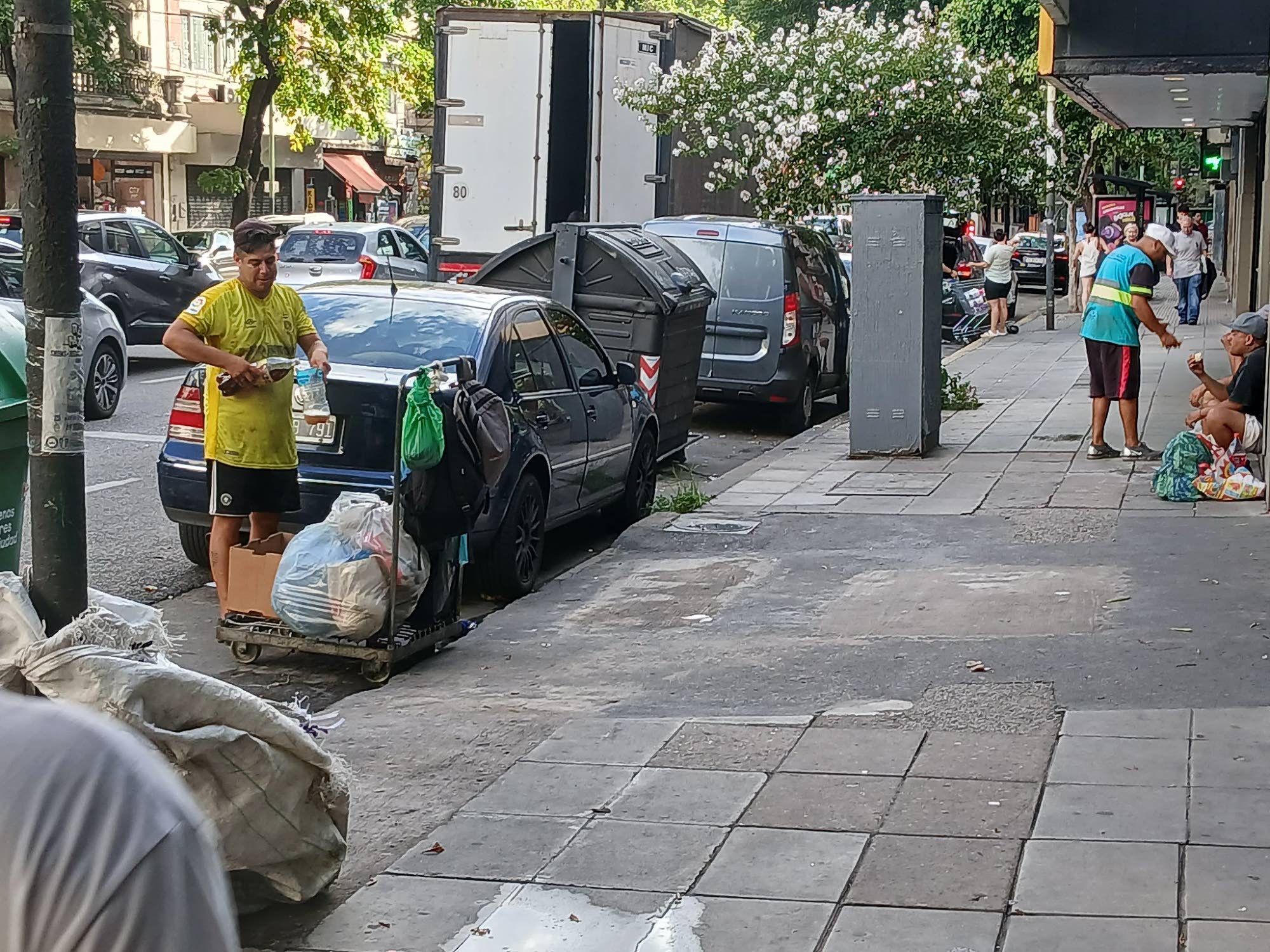 Kierrätysmateriaalin kerääjä työskentelee jätteiden parissa supermarketin edessä Buenos Airesin Almagron kaupunginosassa. Työn niukkuus pakottaa miljoonat argentiinalaiset keksimään omat toimeentulonsa. Kuva: IPS/Daniel Gutman