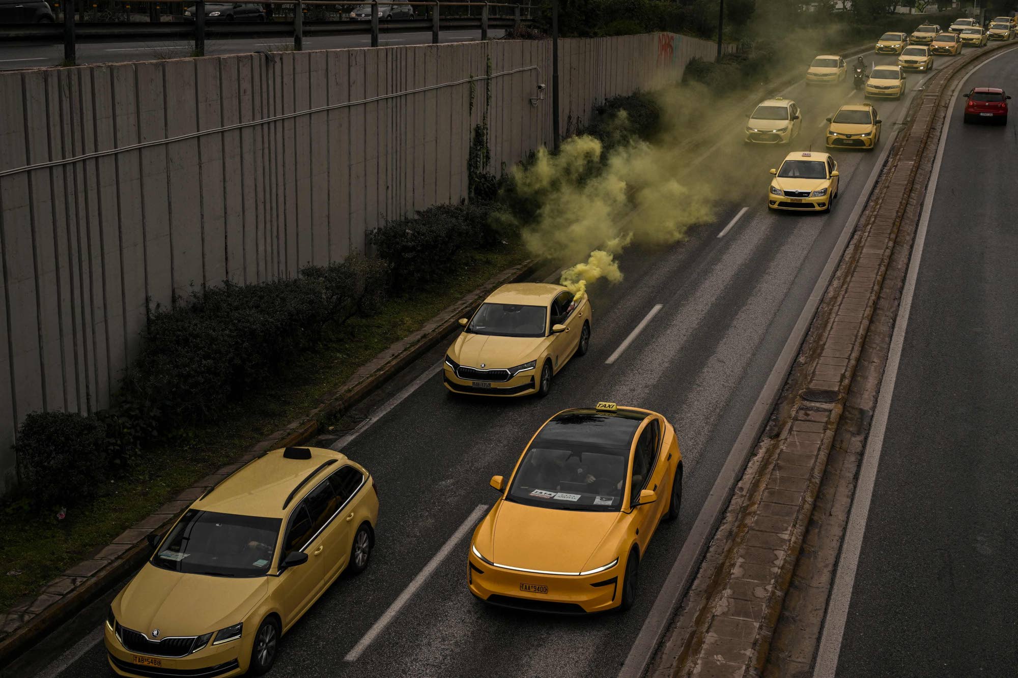Taksinkuljettajat ryhtyivät helmikuussa kolmi­päiväiseen lakkoon. Kuva on Ateenasta.