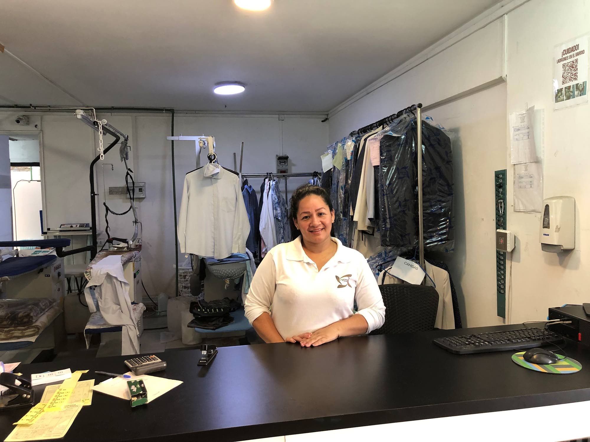 Vaikka hän työskentelee pesulassa, hänellä ja hänen perheellään ei ole laillista oleskelulupaa.